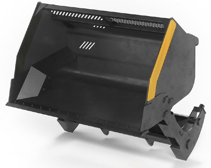 Ковш KU с увеличенной высотой выгрузки. Гидромеханизм встроен в раму ковша. Используется для погрузки легких материалов: угля, зерна, щепы, различных удобрений. Ковш доступен в объемах 3-8куб.м.