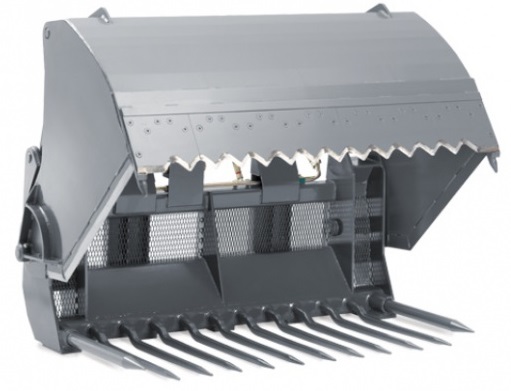 - продуманная конструкция ковша имеет закрытую форму, что предотвращает высыпание и потерю силосной массы